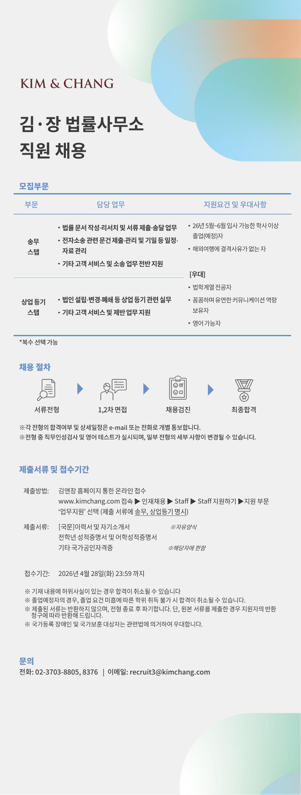 [채용공고] 직원(송무 및 상업 등기 스탭) 채용